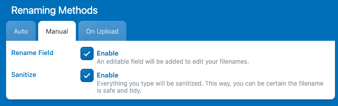 By default, the “Sanitize” option will be enabled — and it’s best to keep it that way. This ensures that any filenames you set are clean and valid, without spaces, special characters, or formatting issues that could cause problems with your media files or URLs.