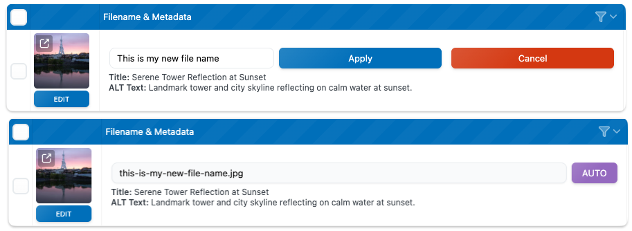 You can now click directly inside the filename input field and edit it manually. Once you make a change, you’ll notice that the plugin automatically sanitizes the filename, ensuring it’s valid, with no spaces, special characters, or invalid formatting.