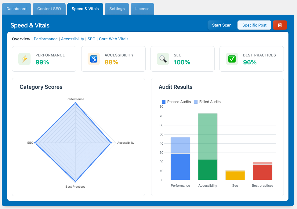 Once this module is enabled, a new tab called “Speed & Vitals” will appear. When you open it for the first time, it will prompt you to set up your Google API key, as it relies on Google’s analysis tools to provide results.