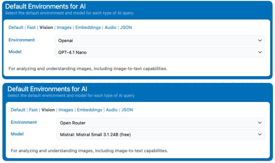 For Media File Renamer, you’ll want to update the default Vision model, since that’s the one used for image analysis and AI Vision renaming.